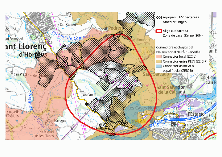 El pretès agroparc d'Ametller Origen tindria un impacte irreversible sobre el sistema de connectors ecològics de l'Alt Penedès i impossibilitaria la reproducció de la parella d'àligues cuabarrada de Gelida, al deixar-les sense terreny de caça.