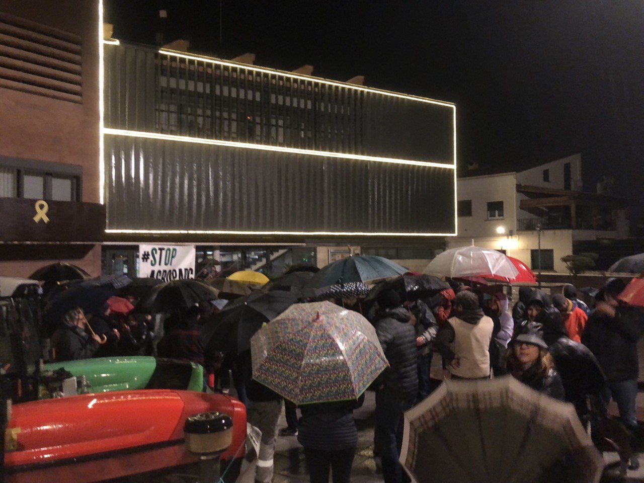 Tot i que el ple es va fer en una nit de pluja, que no convidava a sortir de casa, la gent del poble es va mobilitzar. Més de 100 persones van protestar amb cants i xiulets a la plaça de la vila i carrers adjacents. També es van mobilitzar els pagesos, alguns es van acostar amb els seus tractors.