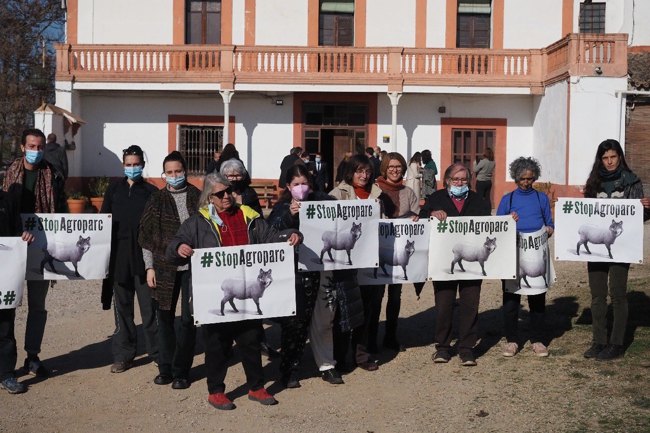 Abans d'entrar a l'ajuntament, membres de la plataforma StopAgroparc li hem explicat els punts essencials per que no estem d'acord amb el projecte d'Ametller Origen.