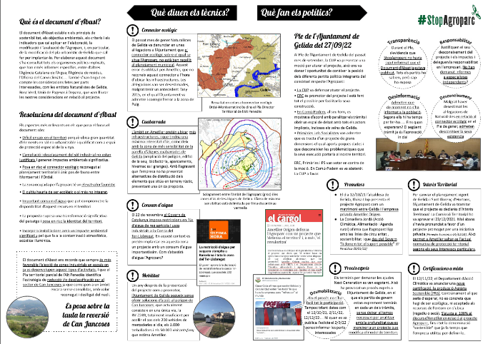 Les partis politiques de Gelida favorables à l'Agroparc veulent nous convaincre que le projet est une protection contre la pression industrielle de la zone métropolitaine. Mais il y a deux aspects qu'ils ne nous expliquent pas :