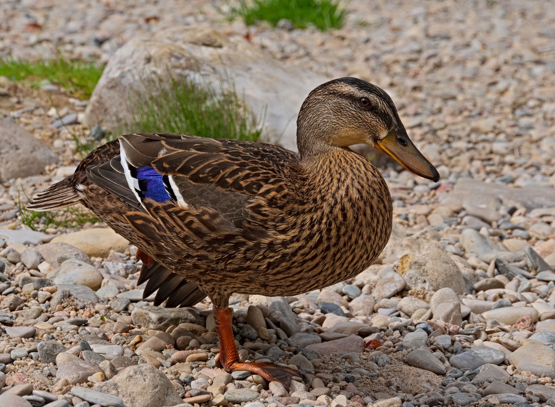Els adults tenen la taca alar o espill de color blau, més gran i conspicu en el mascle.