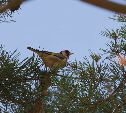 El nom científic fa referència a la seua afició per les llavors dels cards, sobre els quals es posa per a anar-les extraient una a una. El bec esmolat li permet de fer-ho sense fer-se mal amb les espines que les protegeixen.